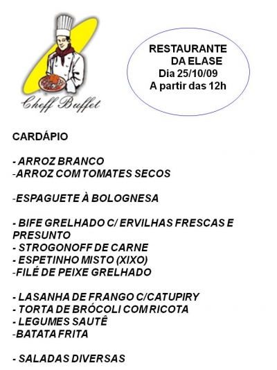 Publicado em 21 de outubro de 2009 Confira o cardápio do Restaurante Campeche neste domingo, dia 25/10 Author: suporte Suporte Técnico.