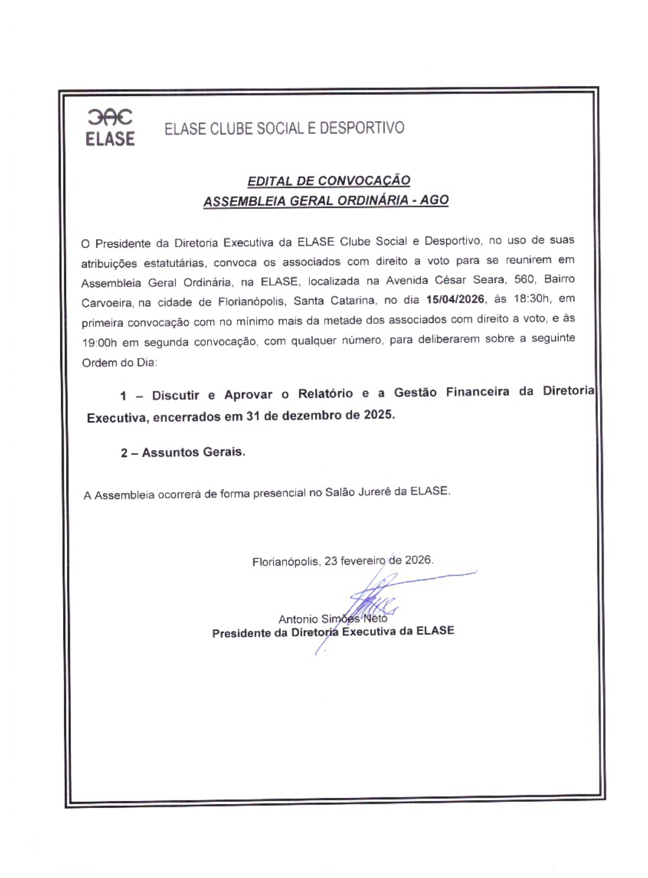 Edital de Convocação Assembleia Geral Ordinária – AGO